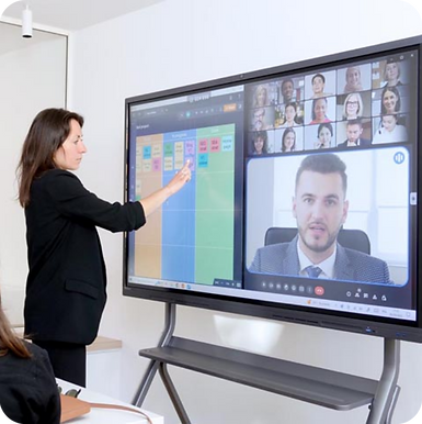 Cette solution complète permet de diffuser vos contenus sur grand écran tout en assurant une captation vidéo précise et une prise de parole claire, offrant ainsi des conditions optimales pour vos événements hybrides.